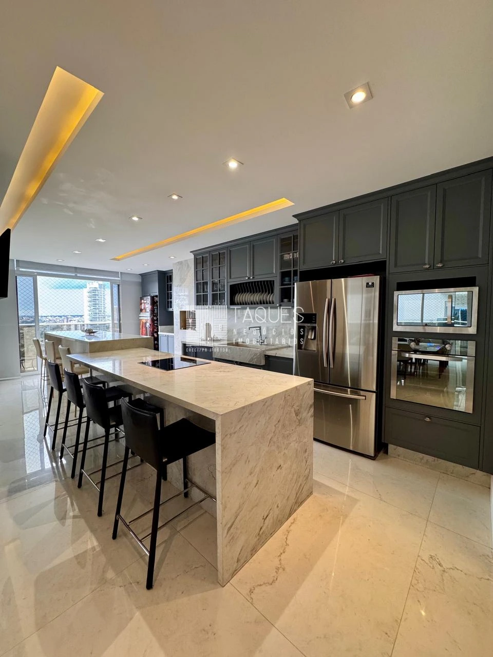 São praticamente 476 m² de área total,disposto por uma ampla sala,conectada com sua área gourmet ( Móveis Florence) e uma generosa lavanderia.