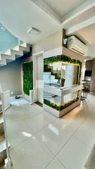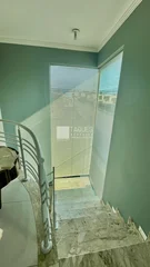(escada revestimento travertino + piso polido porcelanato)