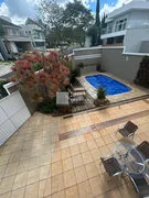 Piso Térreo: sala para 02 ambientes sendo sala de estar e jantar, sala de Tv com lareira, cozinha com armários planejados, área de serviço com armários, lavabo, espaço gourmet com banheiro, piscina, jardim e garagem para 4 carros.