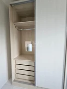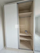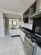 Sobrado para Locação com 2 quartos com armários, sala de estar com móveis, cozinha planejada com mesa e cadeiras, área de serviço com armários, banheiro social e 1 vaga de garagem.